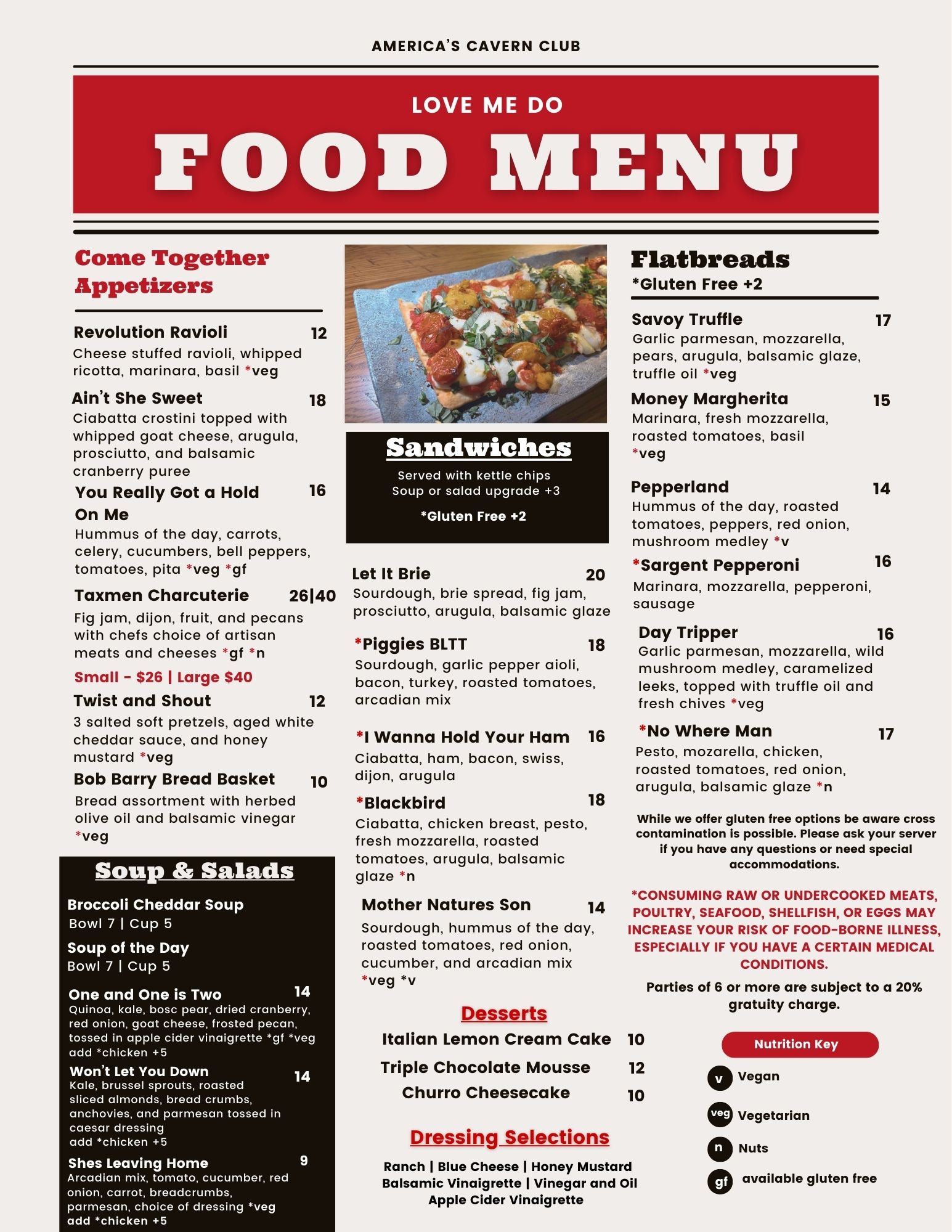Our drink menu is a harmonious mix of cocktails, classic pours, and local favorites. Whether you’re sipping a twist on a timeless tune or raising a glass to your favorite Fab Four lyric, there’s something here to set the perfect mood. Come thirsty—leave nostalgic..